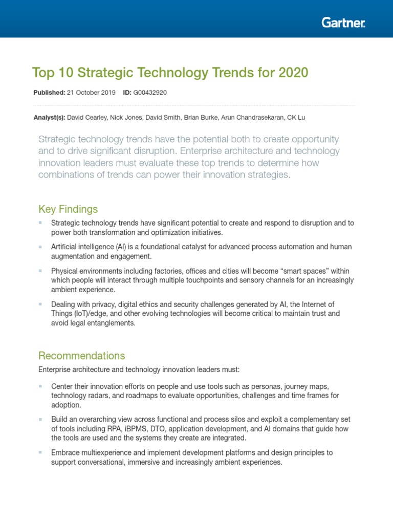 Gartner Top 10 Strategic Technology Trends For 2020 Smarter With Gartner